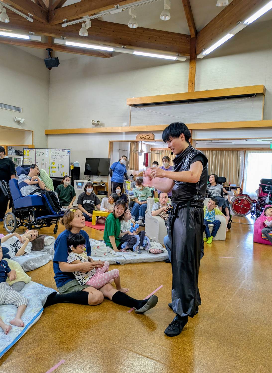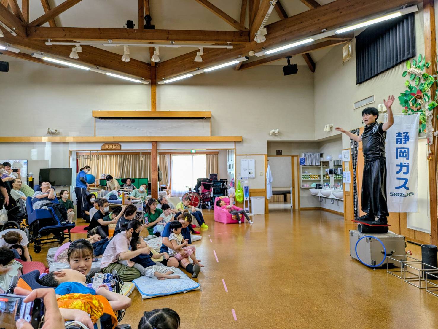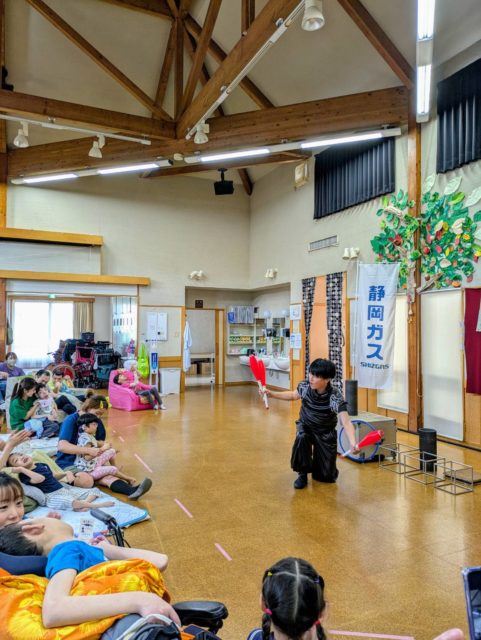シズガスグループプレゼンツ 子どもたちに芸術を届けるプロジェクト おとどけ事業 開催日 2025年9月 場所 社会福祉法人インクルふじ 児童発達支援・放課後等デイサービス でらび~ 出演者 ももっち 内容 パフォーマンス+バルーンプレゼント